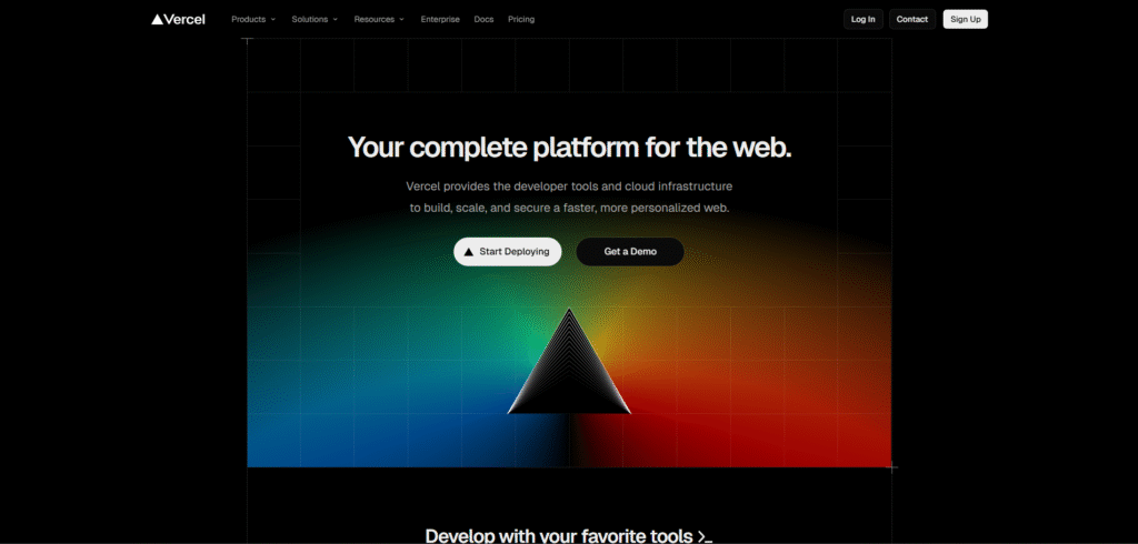 Por outro lado, a Vercel (https://vercel.com/home) concentra em si uma solução de ponta a ponta para criação de AI Apps, Plataforma de Engenharia, Design, Web Apps, tudo dentro do conceito multi-tenancy.