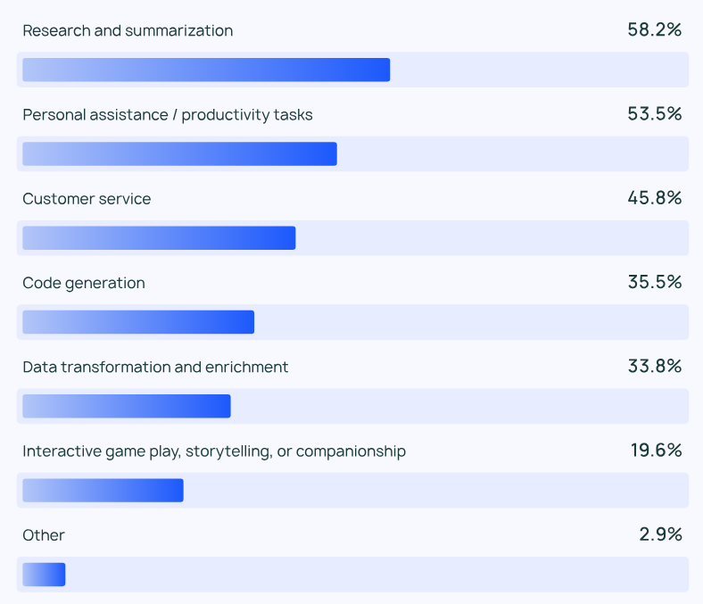 Tratando o tema de adoção do uso de IA Generativa, o portal (e também framework) LangChain realizou uma pesquisa com 1.300 profissionais de tecnologia e chegou nesses números: